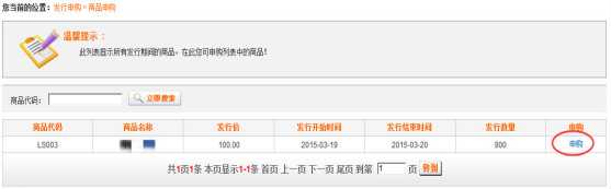 ①顯示所有發(fā)行期間的商品,在此可以進(jìn)行申購。如圖2.1.1-1