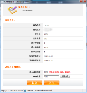 輸入申購數(shù)量,點(diǎn)擊提交。