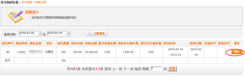 在此界面可以查看交易商的申購信息,可以對其進(jìn)行刪除,刪除后可重新進(jìn)行申購。如圖2.1.2-1