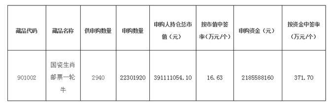本次中簽分配方式按持倉市值優先分配規則,請廣大參與申購的投資會員關注交易賬號中持倉數量和資金變化情況。《國瓷生肖郵票一輪牛》將于2016年12月13日正式掛牌交易。